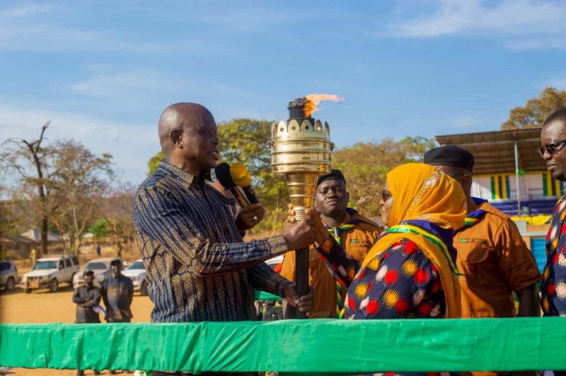 Makabidhiano ya Mwenge wa Uhuru kati ya Mkuu wa Mkoa wa Kigoma, Balozi Simon Nsiro, na Mkuu wa Mkoa wa Katavi, Mhe. Mwanamvua Mrindoko, yamefanyika katika